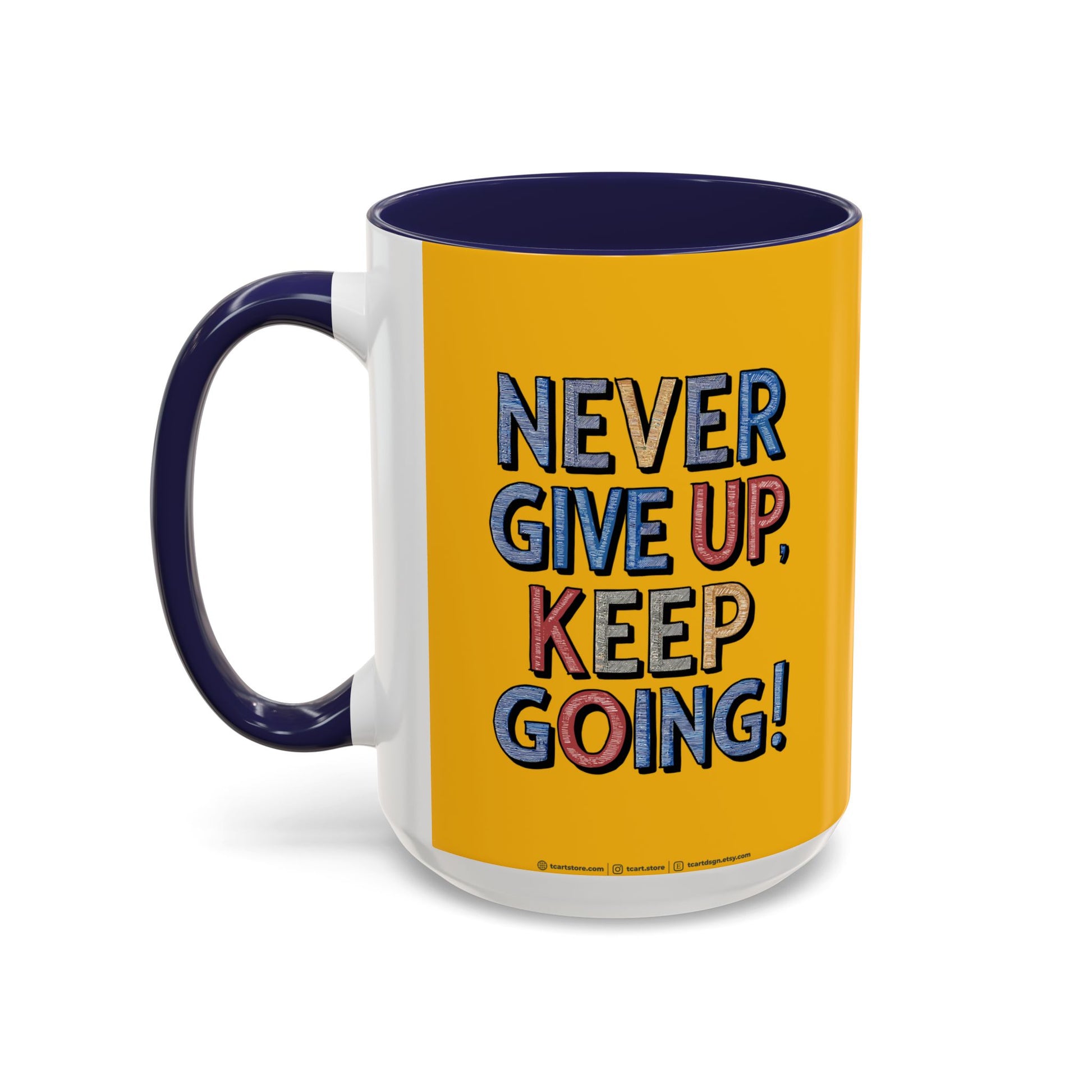 Never Give Up Keep Going Accent Coffee Mug (11, 15oz)